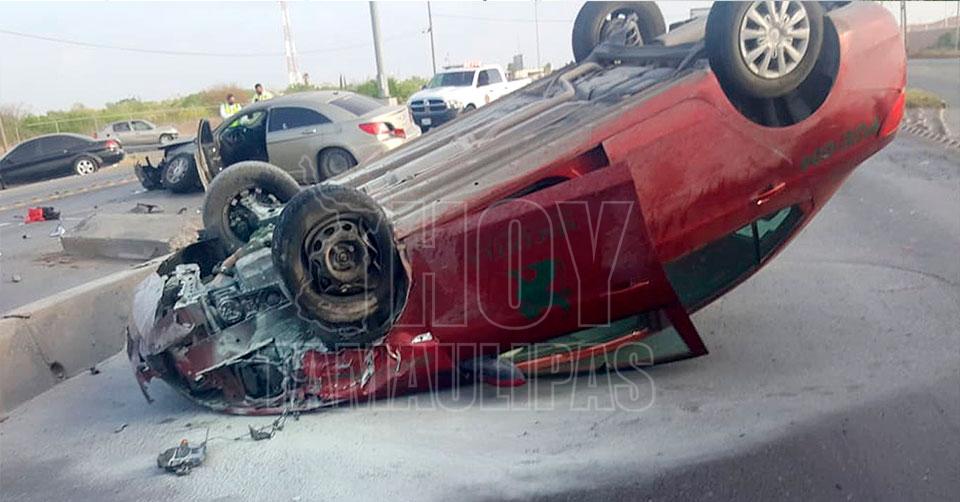 Choque con volcadura deja una mujer lesionada y daños materiales en Nuevo Laredo