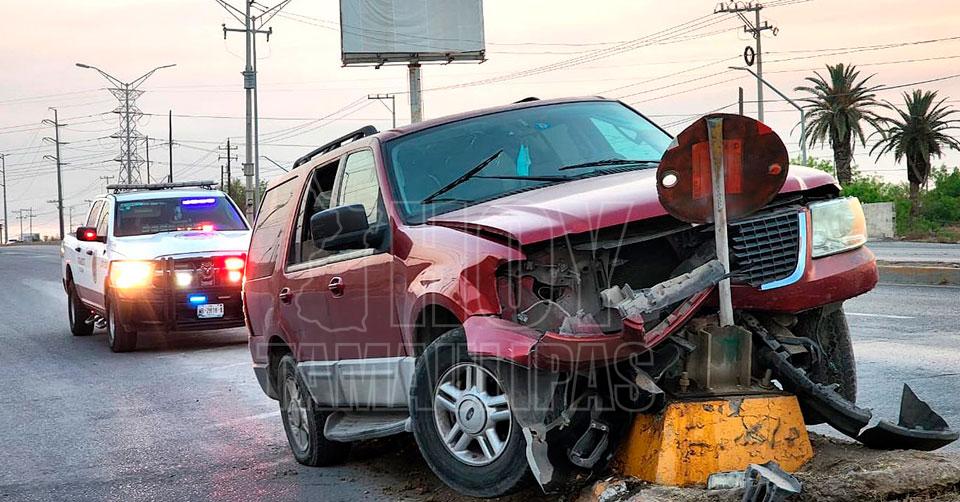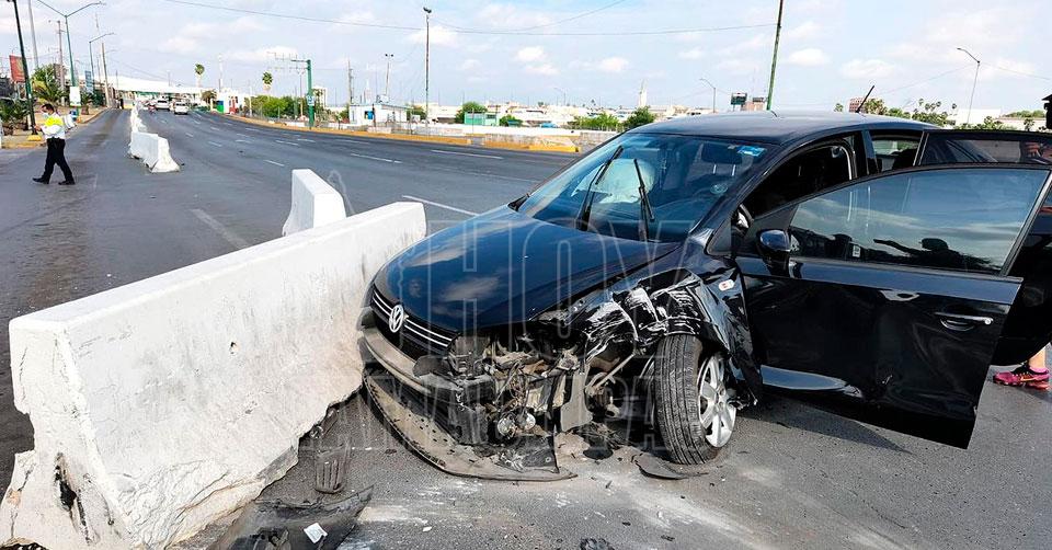 Sale ilesa tras chocar piedra separadora en Nuevo Laredo