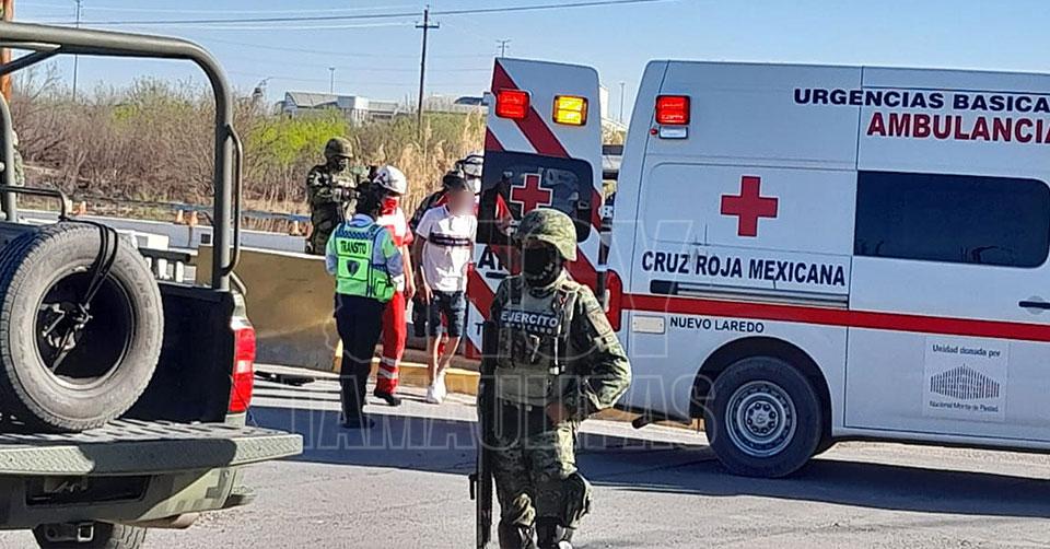 Se pasa alto militar y embiste camioneta en Nuevo Laredo