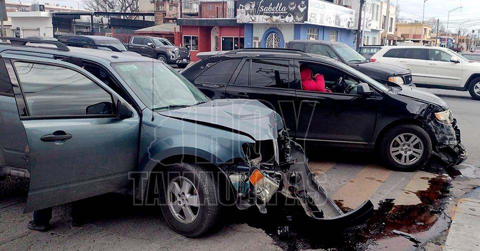 Encontronazo deja daños y a mujeres con golpes en Nuevo Laredo