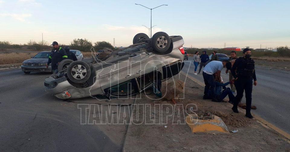 Choque con volcadura deja tres lesionados en Nuevo Laredo
