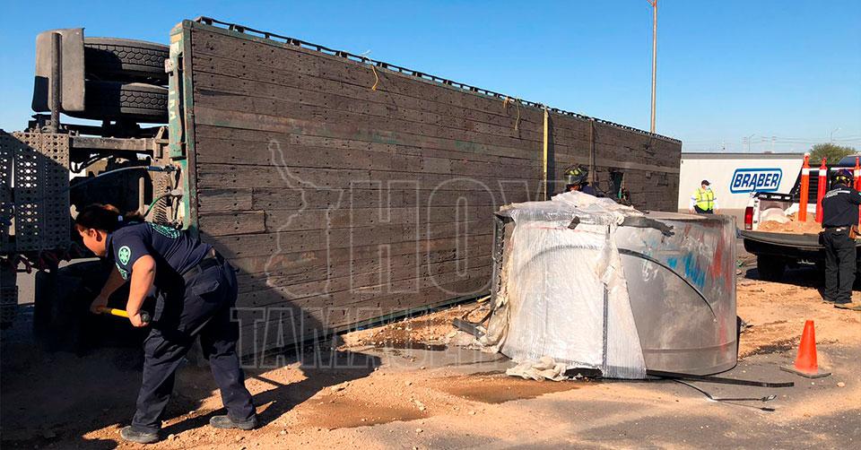 Volcadura deja un herido y causa cierre de puente en Nuevo Laredo