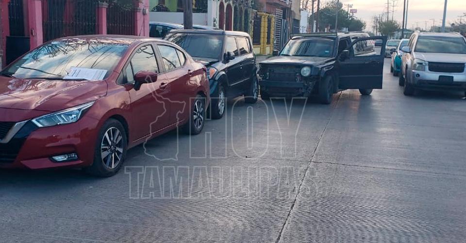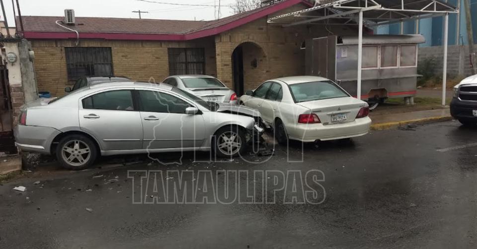 Se distrae al celular y choca dos vehículos en Nuevo Laredo