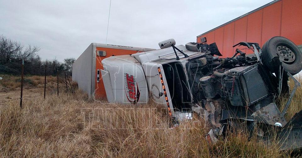 Sobrevive trailero a volcadura en Nuevo Laredo