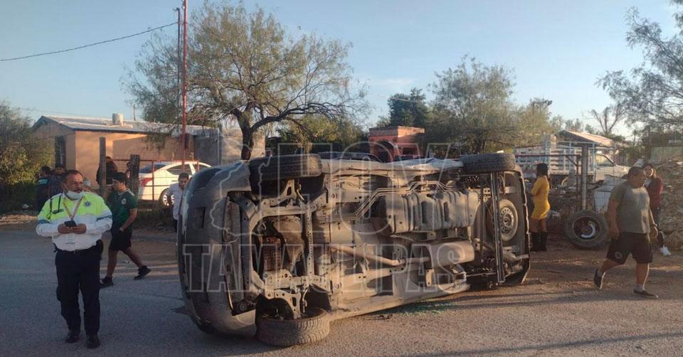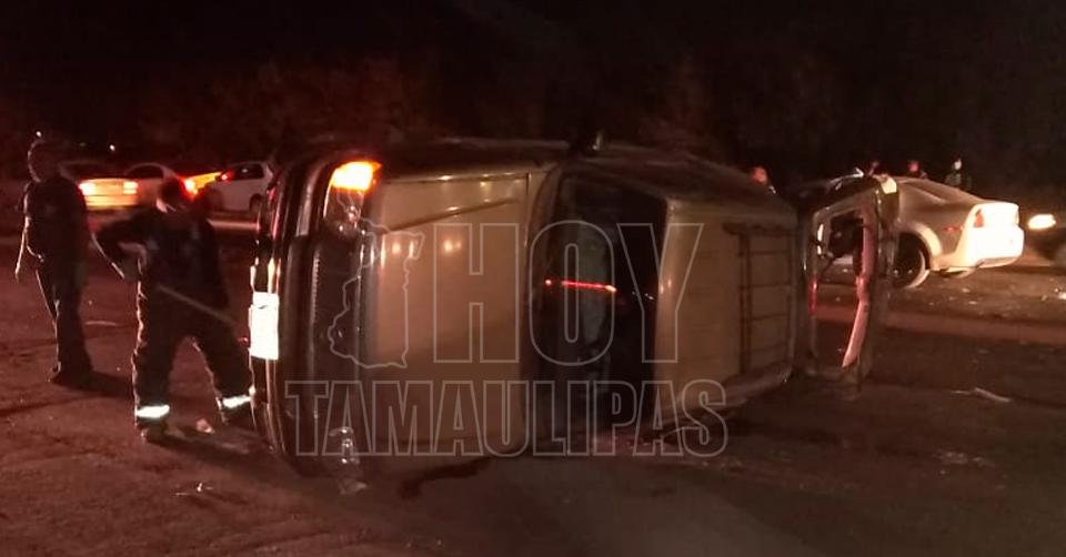 Deja choque con volcadura 5 lesionados en Nuevo Laredo