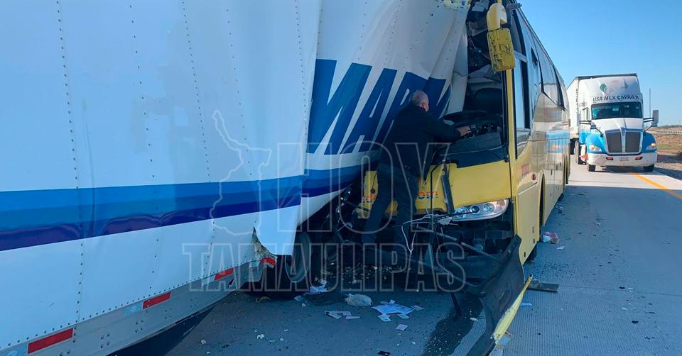 Choca autobús con tráiler cerca de Nuevo Laredo; deja 9 lesionados