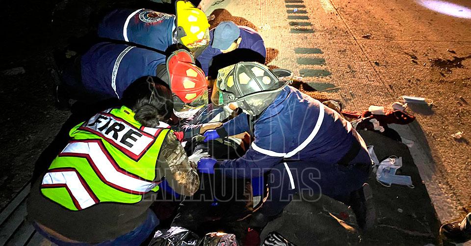 Volcadura cerca de Nuevo Laredo cobra vida de mujer y deja cuatro heridos