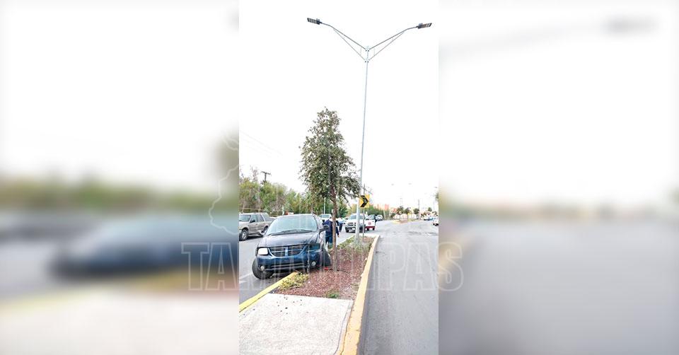Dormita al volante y se sube a camellón en Nuevo Laredo