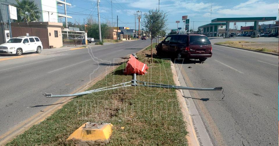Abandonan camioneta tras derribar arbotante en Nuevo Laredo