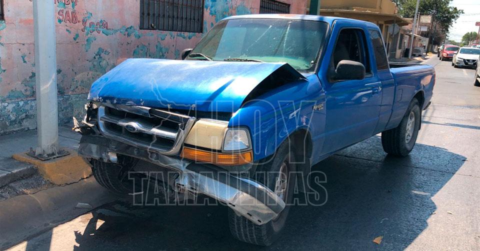 Abandonan camioneta tras choque con arbotante en Nuevo Laredo
