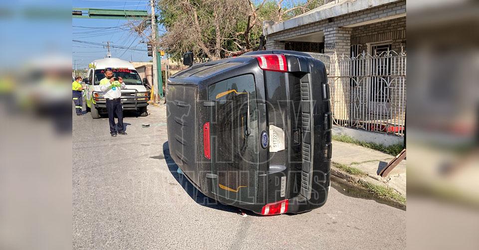 Vuelca camioneta tras encontronazo en Nuevo Laredo