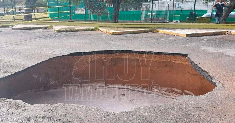 Se abre enorme socavón en el Parque Narciso Mendoza en Nuevo Laredo
