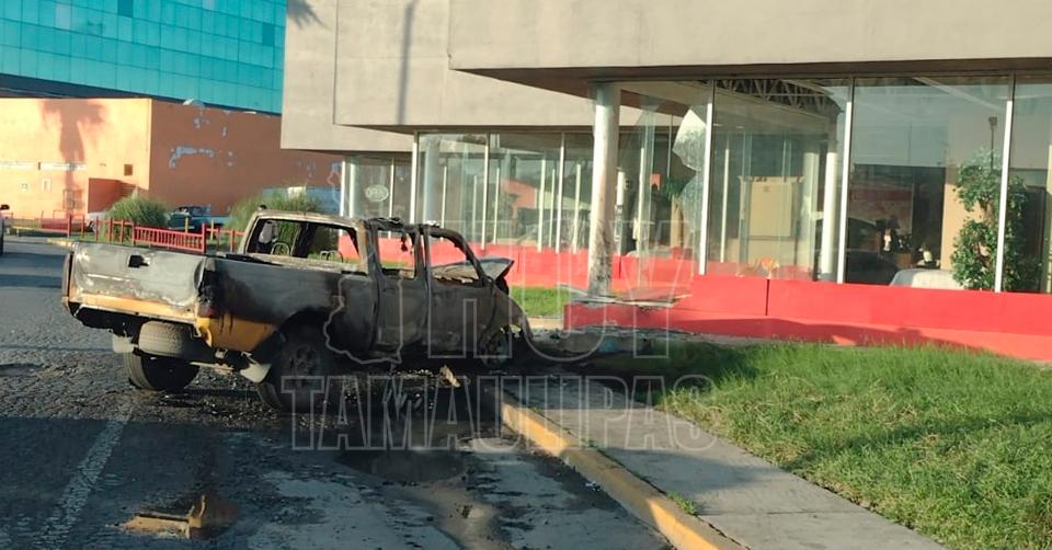 Arde camioneta tras chocar contra mueblería en Nuevo Laredo