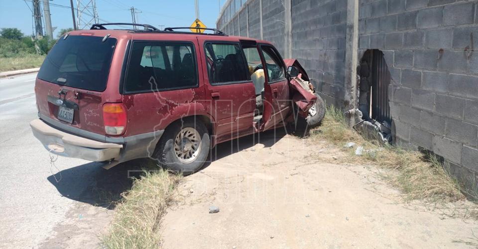 Abandonan camioneta tras chocar con barda en Nuevo Laredo