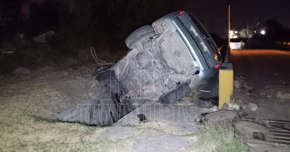 Abandonan vehículo tras volcadura en Nuevo Laredo