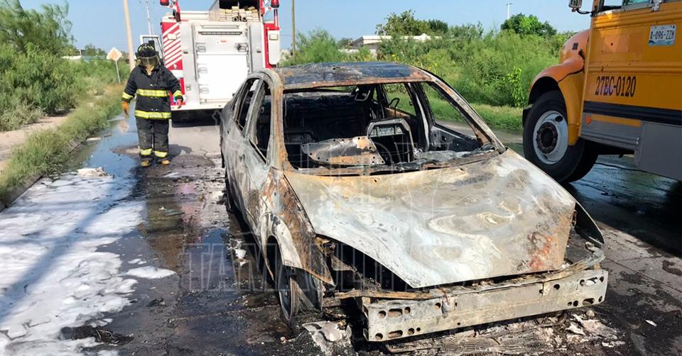 Se incendia vehículo y lo abandonan en Nuevo Laredo