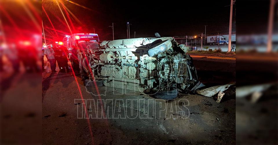 Choca camioneta y la proyecta hacia terreno en Nuevo Laredo