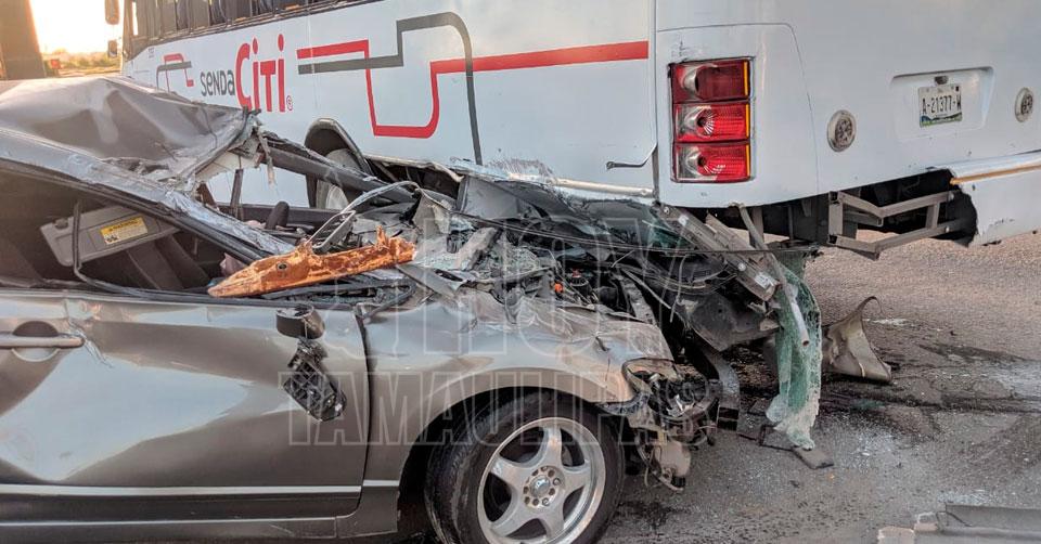 Se estrella con camión en Nuevo Laredo y sobrevive