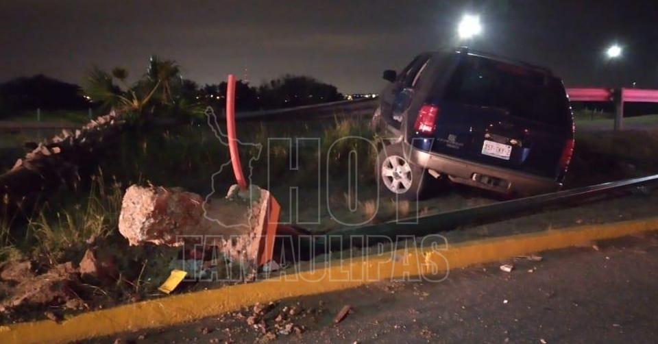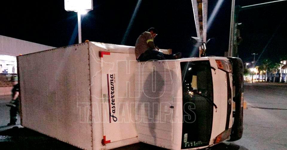 Vuelca tras chocar con estructura metálica en Nuevo Laredo