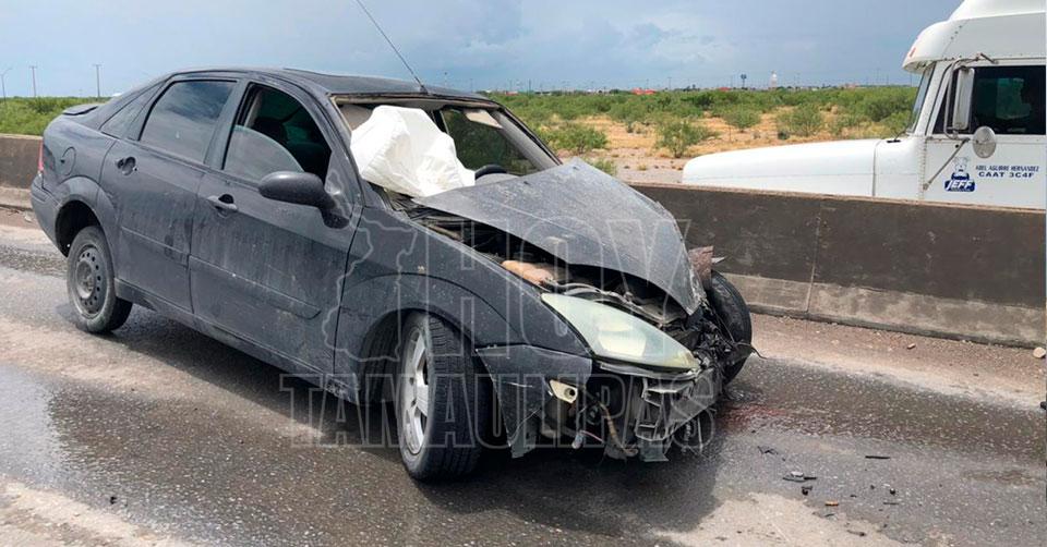 Resulta herido al chocar su auto contra tráiler en Nuevo Laredo