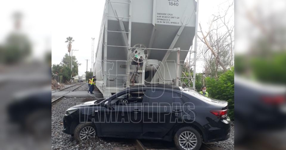 Arrastra tren a automóvil; se salvan en Nuevo Laredo