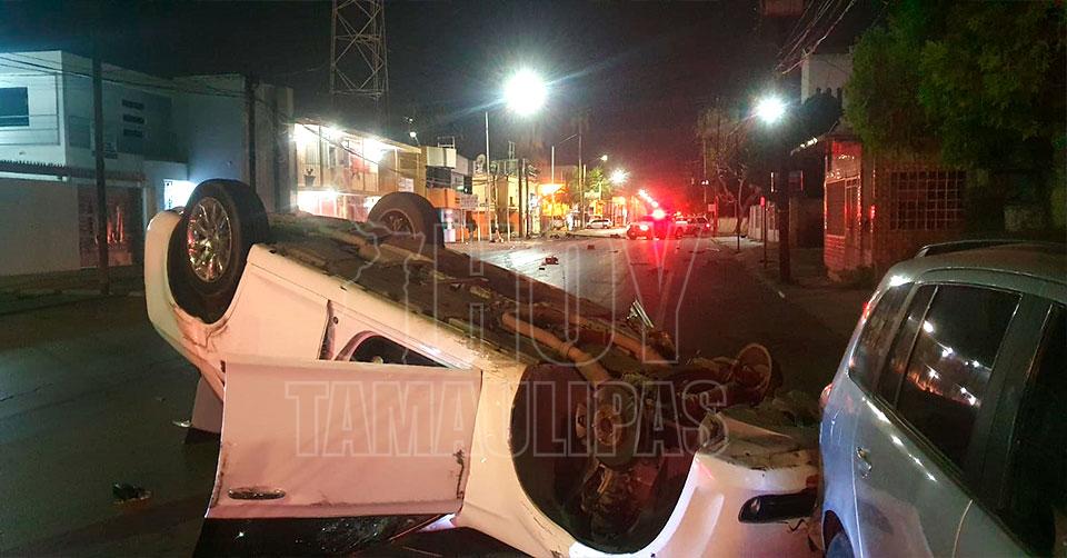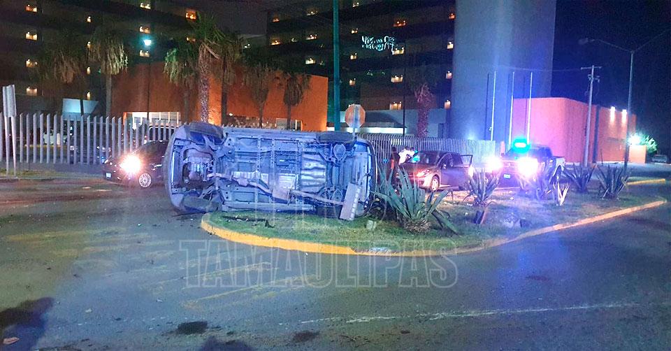 Mujer sale ilesa tras sufrir choque con volcadura en Nuevo Laredo