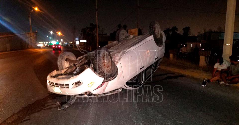 Abandona su vehículo y acompañante tras volcadura en Nuevo Laredo