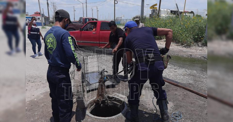 Rescatan a mapache atrapado en alcantarilla de Nuevo Laredo