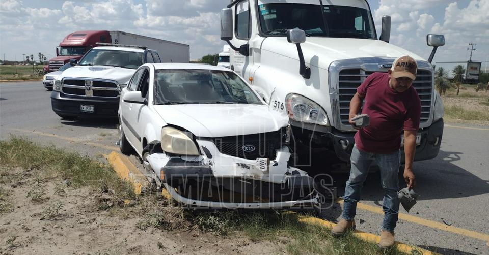 Se estrella contra tráiler y sale ileso en Nuevo Laredo