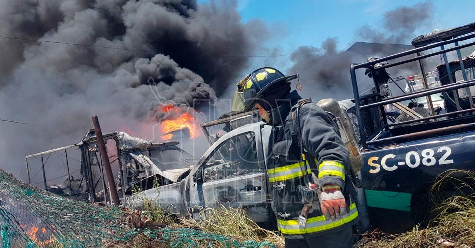 Incendio acaba con unidades en deshuesadero de Nuevo Laredo