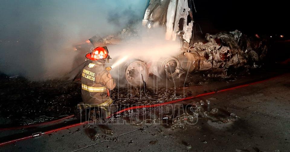 Sufre trailero quemaduras tras accidente carretero cerca de Nuevo Laredo