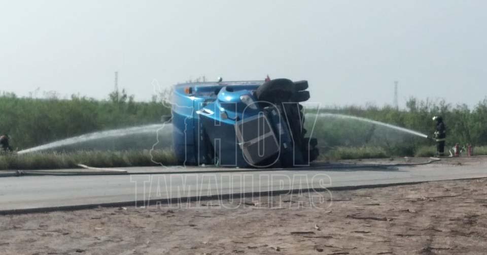 Vuelca tráiler en Nuevo Laredo con más de 33 mil litros de gasolina