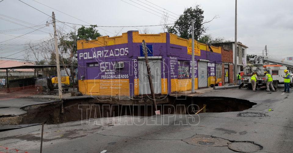 Se llevará 45 días la reparación del socavón enorme en Nuevo Laredo