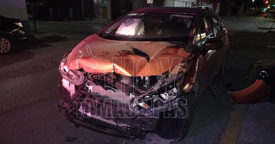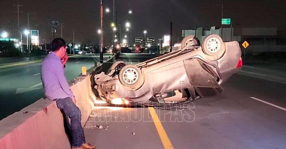 Vuelca al chocar contra piedra separadora en Nuevo Laredo