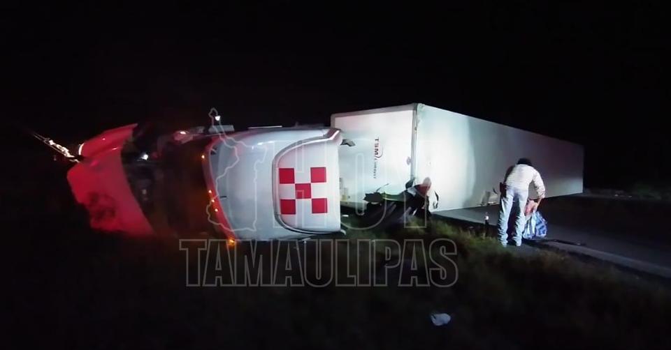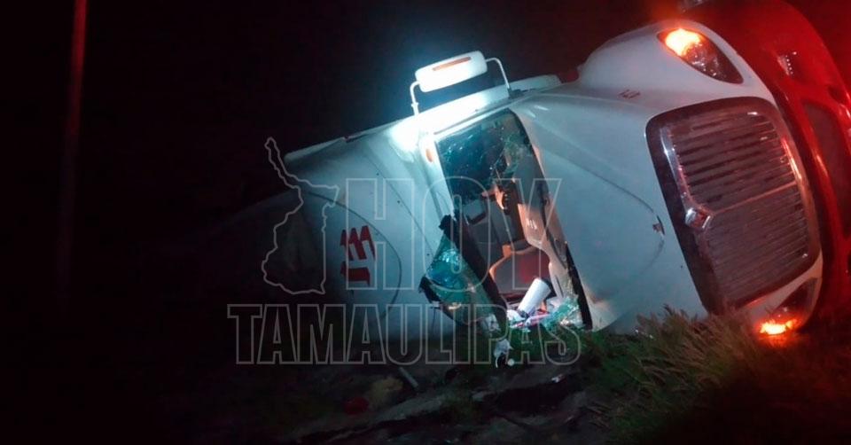 Muere mujer embarazada en volcadura cerca de Nuevo Laredo