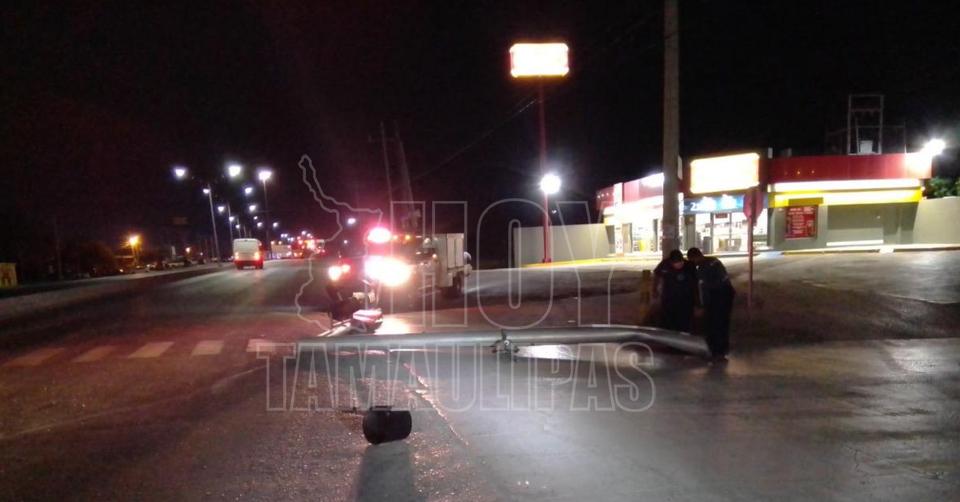 Derriba poste con camioneta y huye en Nuevo Laredo