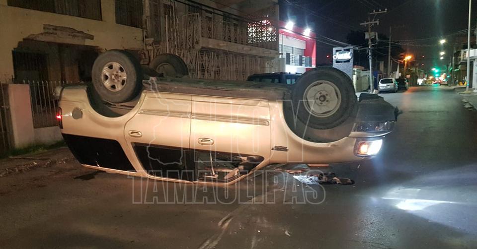 Sale herida mujer en choque con volcadura en Nuevo Laredo