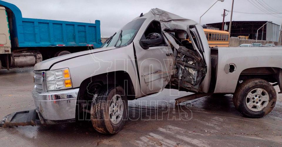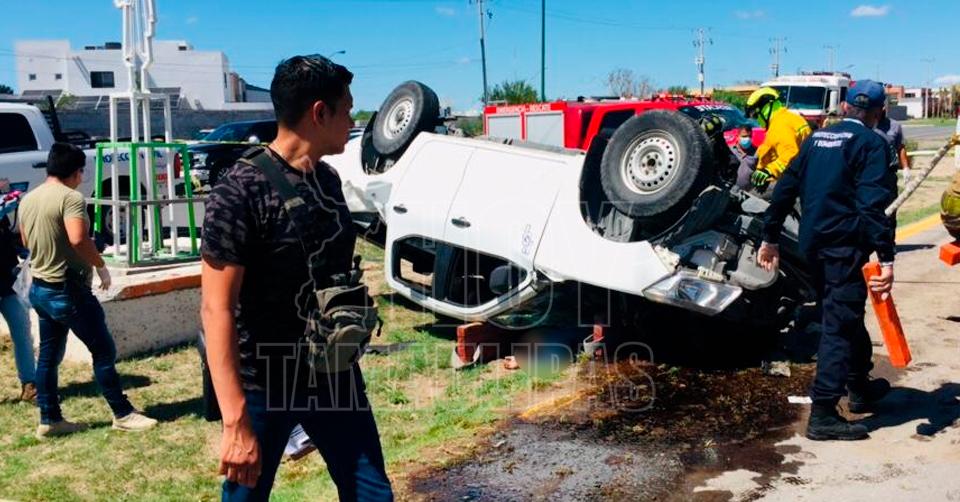 Conductora queda herida tras choque con volcadura en Nuevo Laredo