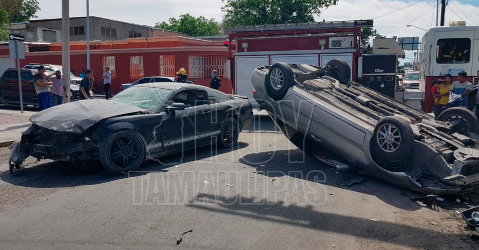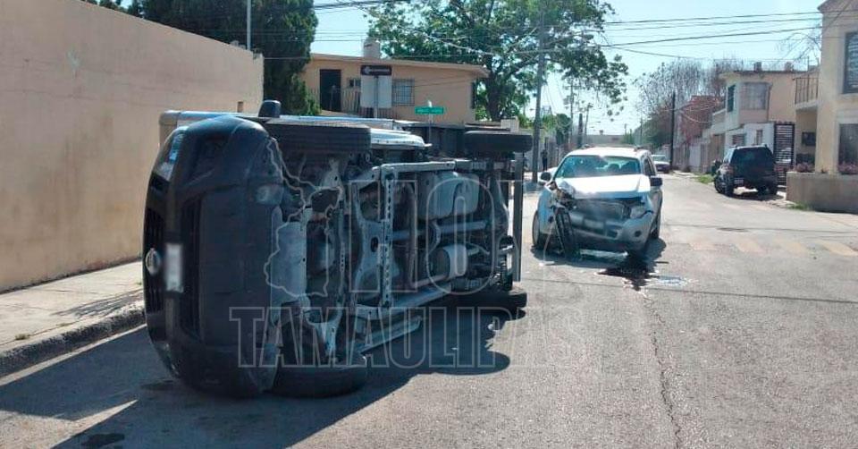 Adulto mayor causa choque con volcadura en Nuevo Laredo