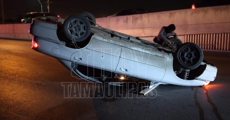 Abandonan vehículo tras volcadura en Nuevo Laredo