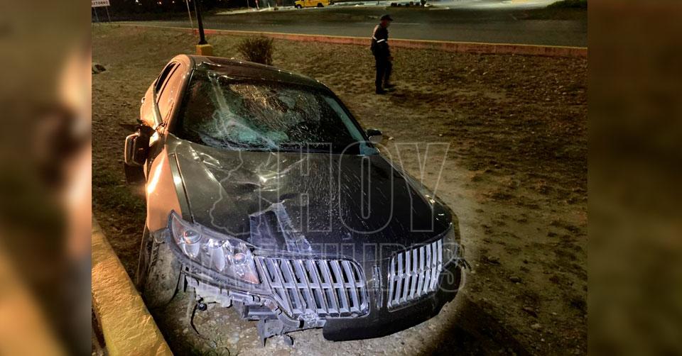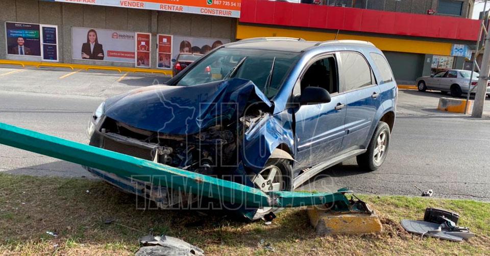 Choca contra camellón y base de anuncio en Nuevo Laredo