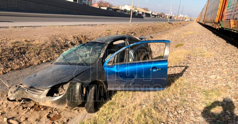 Abandonan vehículo tras volcadura en Nuevo Laredo
