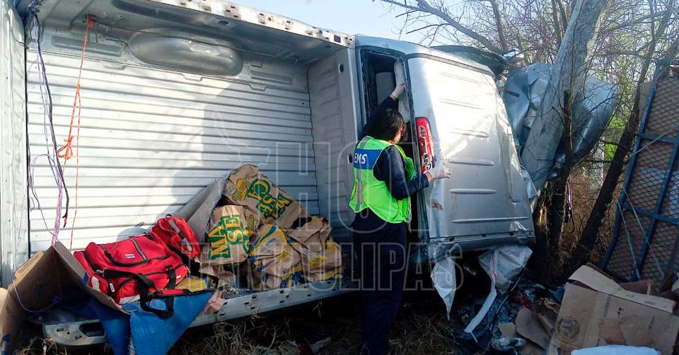Queda joven atrapado en camioneta tras volcadura en Nuevo Laredo