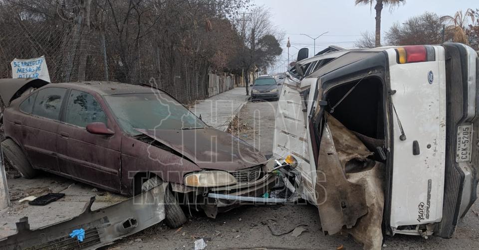 Vuelca tras chocar con unidad estacionada en Nuevo Laredo; se da a la fuga
