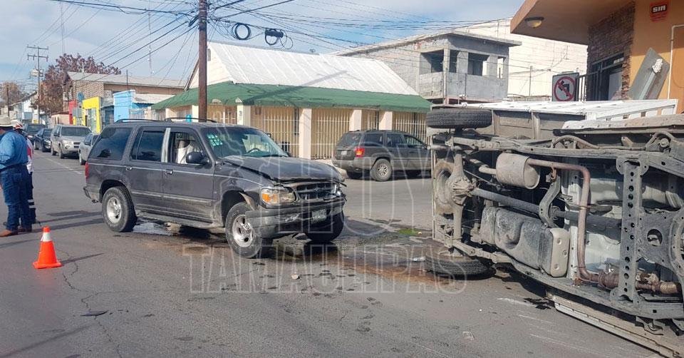 Se pasa alto y causa choque con volcadura en Nuevo Laredo