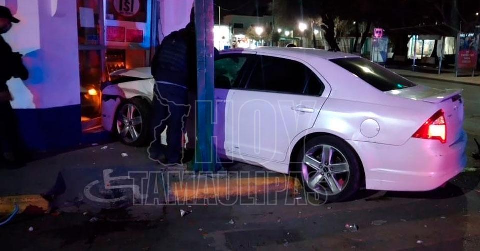 Abandonan coche tras estrellarlo contra farmacia en Nuevo Laredo