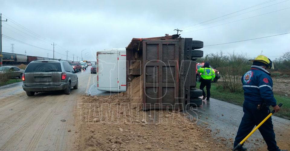 Sobrevive chofer de camión de volteo a volcadura en Nuevo Laredo