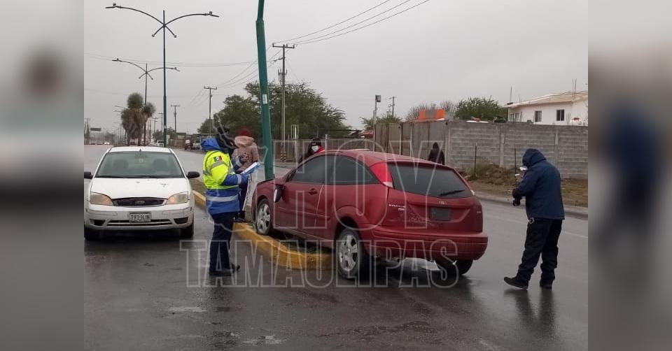 Daña poste por tratar de evitar accidente en Nuevo Laredo