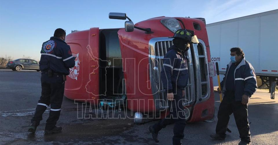 Vuelca trailero y sobrevive en Nuevo Laredo
