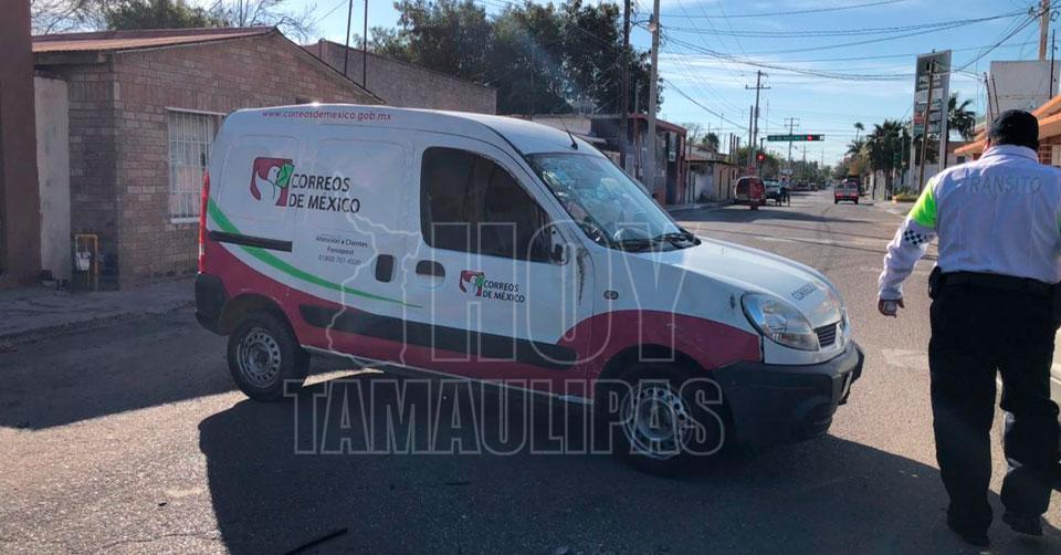 Vuelca camioneta de Correos tras choque en Nuevo Laredo